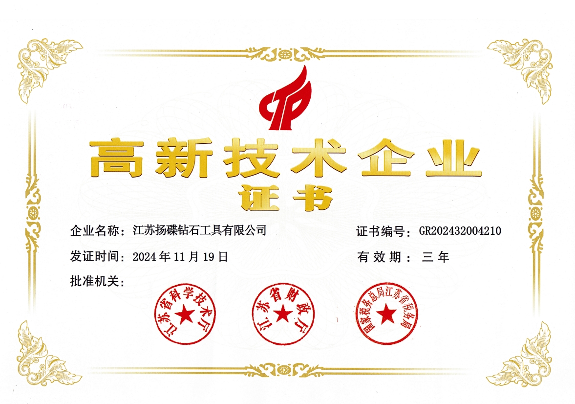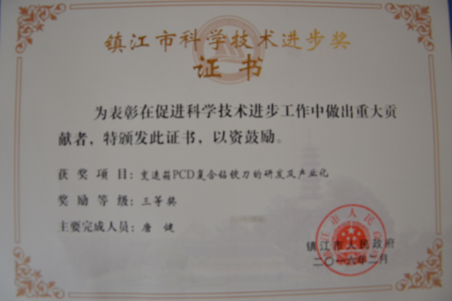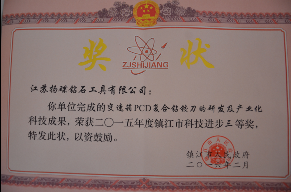 多年來,企業通過ISO9001國際質量體系認證,被中國中輕產品質保中心授予“全國金剛石制造行業質量放心滿意單位”,獲得江蘇省高新技術企業稱號,榮獲江蘇省小巨人稱號,變速箱PCD復合鉆鉸刀獲省高新技術產品等等。